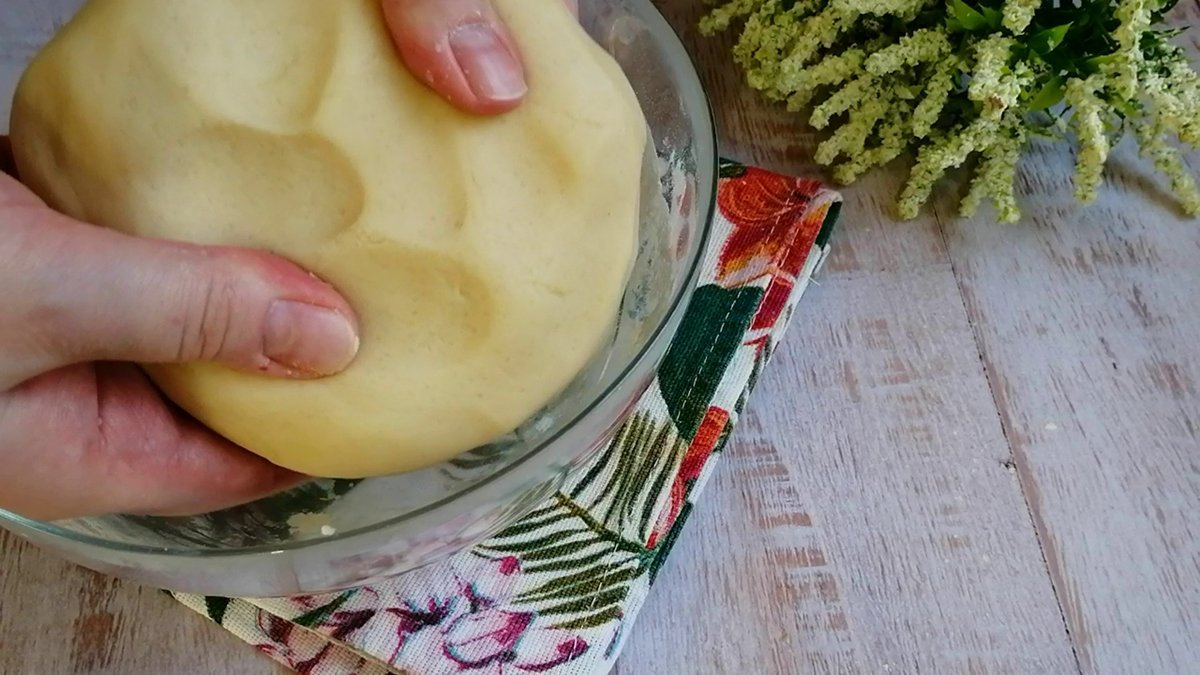 Готовое тесто заверните в пищевую пленку или накройте миской и уберите в холодильник минимум на 40 минут. Это важный этап: тесто «отдохнет», станет более послушным, и с ним будет легче работать.