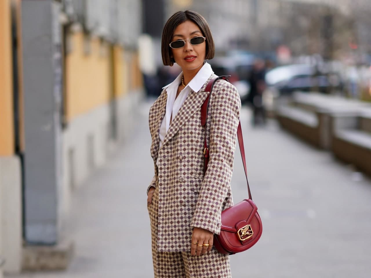 Обувь в ретро-стиле, пальто в тон или даже смелое решение надеть жакет на голое тело — всё это работает в современном контексте.