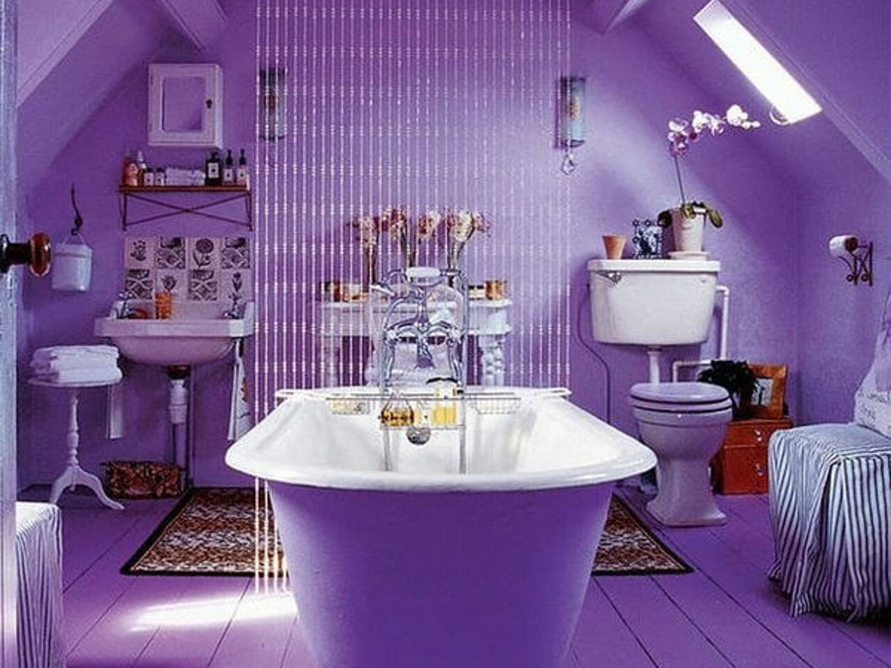 При выборе цветовой палитры для этой ванной комнаты владельцы вдохновлялись идеей: «Прочь скучные серые тона!». Благодаря просторному помещению стало возможным использовать цвета в полную силу, не боясь перегрузить пространство.
