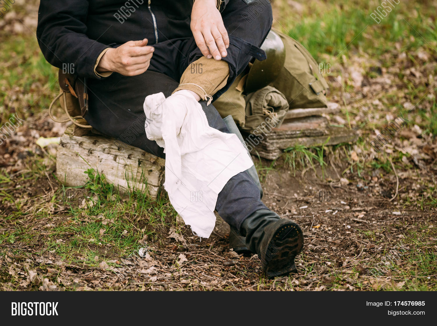 1. Разложите портянку перед собой и поставьте ногу на её ближний край.